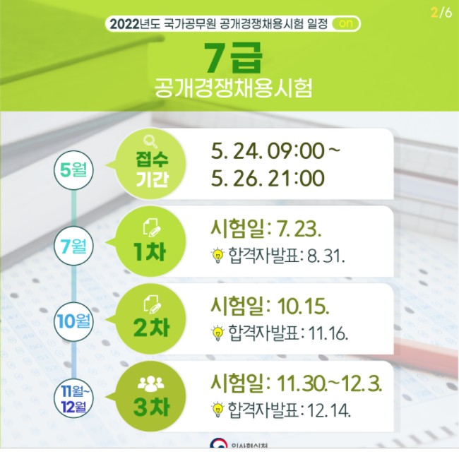 7급공무원 시험일정 (공개경쟁채용시험)