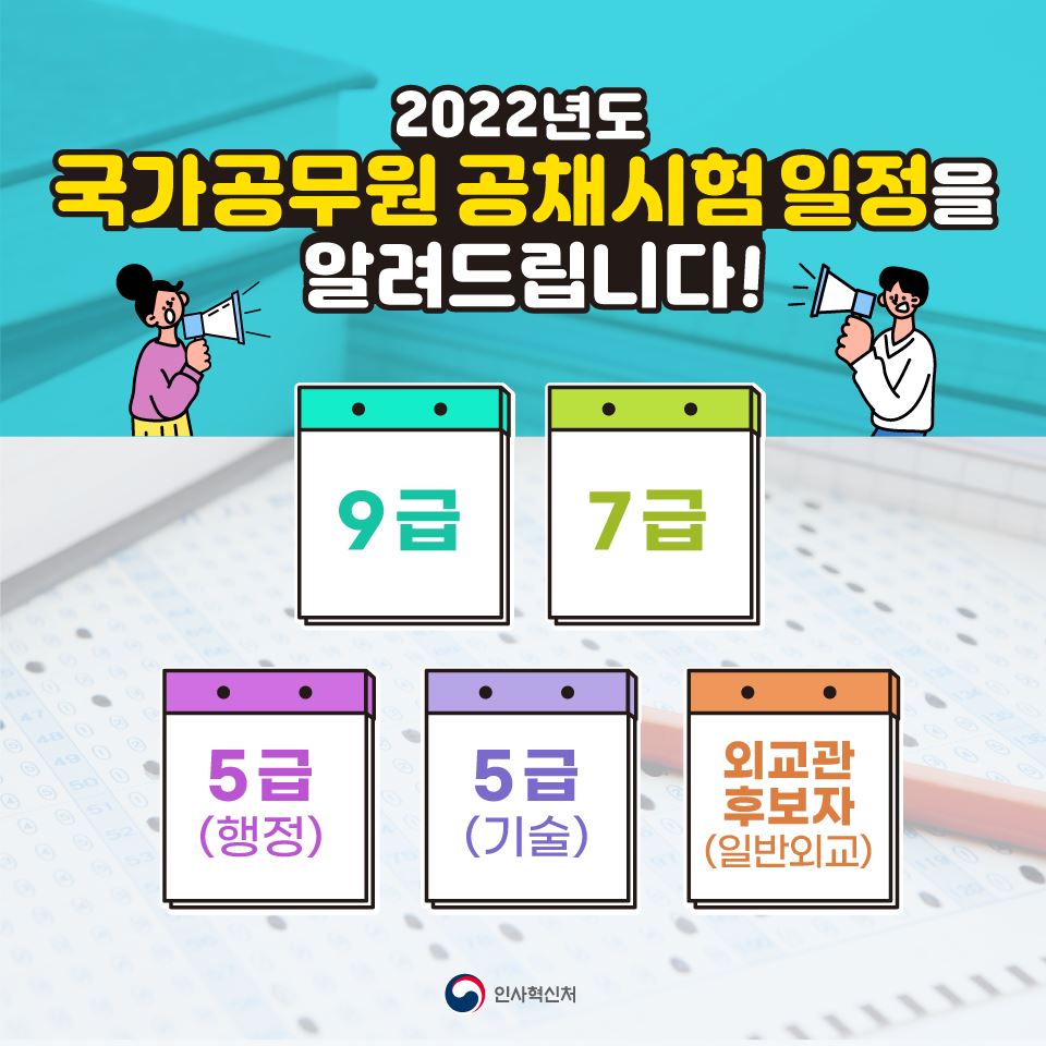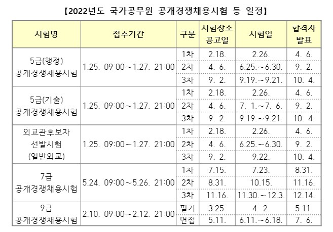 2022년 공무원 시험일정 9급, 7급, 5급 확인해보세요.
