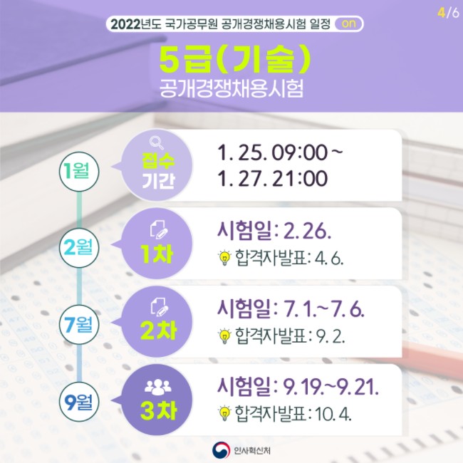 5급공무원 시험일정 (기술) 공개경쟁채용시험